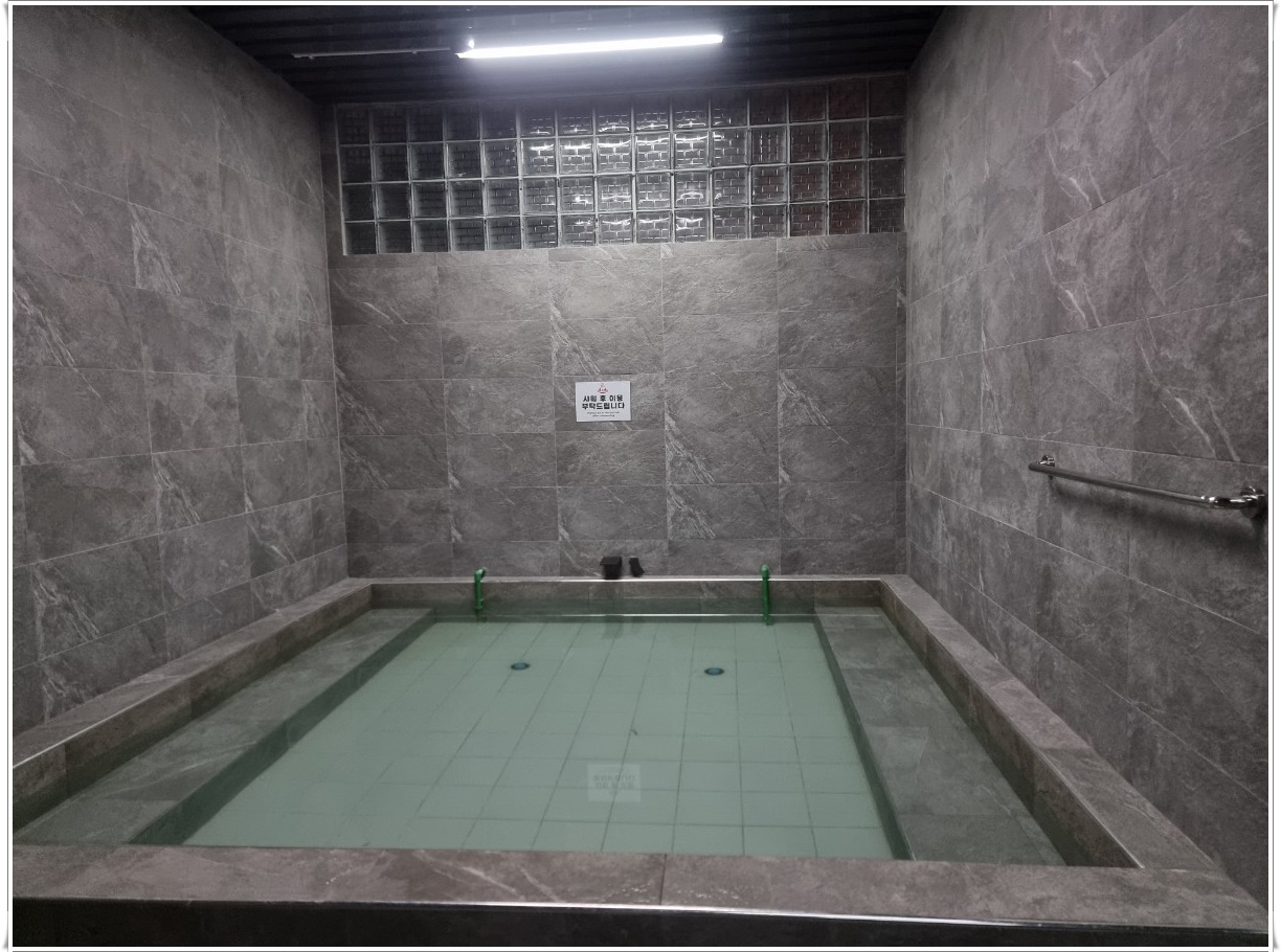 After undressing, the space opens up for the full service. Here, after taking a quick shower, as shown in the photo below, you can enter the hot spring and sweat in the sauna depending on your choice. You can freely tell us how long you sweat. Usually, it takes about 10 to 20 minutes including the shower. It consists of a shower, sauna, and hot spring.
