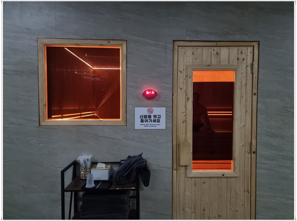 The photo below is the space where you take off your clothes before the full service begins. After that, you will need to take a quick shower and enjoy the sauna, so you will need to take off your clothes that are not the ones you came in but other clothes that have been prepared.